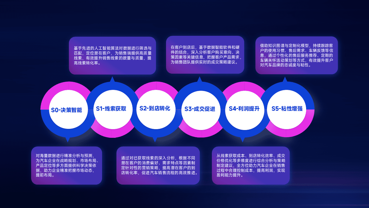 通过拓宽潜在客户来源、、优化线索分配并提高到店转化率,,,以增强销售效率。。。同时,,,,利用线索数据不断优化分析模型,,,有效提升转化率,,,扩大营销影响力。。。。